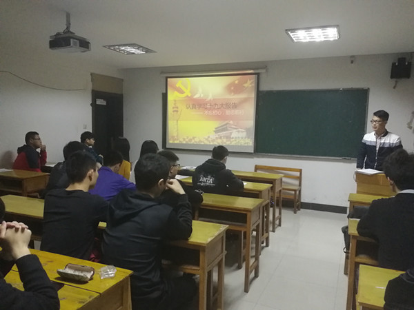 10月到11月期间,学生党支部在支部中积极宣传学习十九大精神,组织各类党员实践活动,组织一次学习研讨论坛、组织一次文艺演出、举办一次专题团课、组织一次党员活动月系列活动、开展一次观影活动、举行一次演讲比赛、开展一次党的知识竞赛、树立一批先进典型、举办一次主题支部奉献日活动、撰写一篇心得体会,以创新性的精神宣传与展示,项目化的价值引领和塑造,交融性的文化熏陶与内化,导向性的目标指引与促融,渗入式的活动组织与开展,榜样化的行为辐射与带动,将学习宣传贯彻十九大精神贯穿于学生教育管理的全过程,引导学生在求新、求真、求索、求融、求实、求思中研十九大精神之学,聚忠诚向党之心,立工业报国之志,励社会主义核心价值之行。