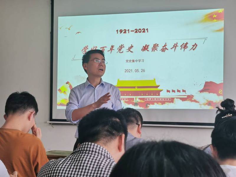 黄海鸿带领支部党员一起回顾了中国共产党自成立以来艰辛而辉煌的风雨历程。他表示党史学习是一本生动鲜活的教科书,并不是枯燥乏味的说教,在一百年的非凡奋斗历程中,一代又一代中国共产党人顽强拼搏、不懈奋斗,涌现了一大批视死如归的革命烈士、一大批顽强奋斗的英雄人物、一大批忘我奉献的先进模范,形成了一系列伟大精神,构筑起了中国共产党人的精神谱系,为我们立党、兴党、强党提供了丰厚滋养。学生党员要坚定理想信念,提高内在素质,锤炼过硬本领,开拓科研视野,跟上时代发展步伐,为祖国的发展贡献自己的一份力量。