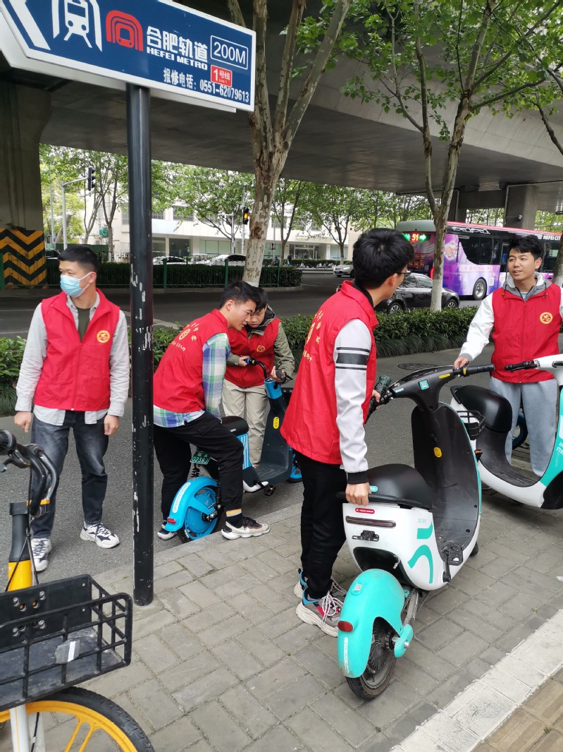 为宣传呼吁学生及附近居民绿色出行,4月24日,学院研究生在屯溪路校区的北门、东门及地铁口附近的共享单车停车点开展了主题为“我为群众办实事 共享单车文明行”的志愿服务活动。