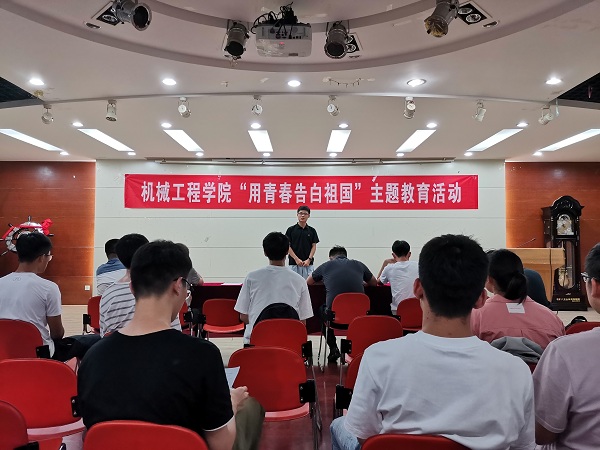 该院本科生第一党支部汪海洋同学动情地说:“国家是大家的,爱国是每个人的本分。只有付出努力,建设强大的国家,才能屹立于世界民族之林。”机制党支部徐文同学在演讲中自豪地讲述:“在爬满甲骨文的钟鼎上,我读懂了童年祖国的灵气;在布满烽火的长城上,我读懂了青年祖国的英气;在缀满诗歌与科学的大地上,我读懂了壮年祖国的成熟。”绿色所党支部兰森同志慷慨激昂地说:“同学们,红旗飘飘、号角吹响,党和国家教育指引我们要崇德向善、锤炼本领,为实现中华民族伟大复兴的中国梦努力奋斗。相信有梦有爱的我们必定会放飞青春梦想,不忘初心、砥砺前行!”