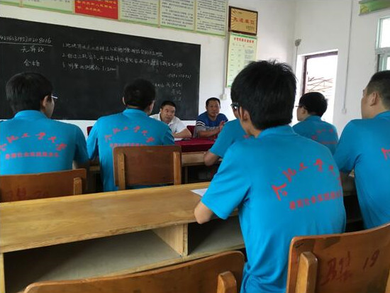 8月19日,调查团从合肥出发前往湖北宜城,翌日到达宜城市流水镇并与当地团委完成交接。8月20日正式开始各项工作。工作主要分为三个部分:一、调查流水镇贫困人口分布情况,从中选取典型贫困村进行研究;二、对典型贫困村进行实地走访,调查当地“精准扶贫”政策落实中的具体措施;三、选取一户贫困家庭进行具体的帮扶活动。调查团对流水镇马集村进行了实地走访,发现位置偏远,地处山区是这个贫困村的主要成因。同时调查发现当地政府也积极开展“精准扶贫”工作,采取产业扶贫、医疗救助、发展教育、易地扶贫,生态补偿等因地制宜地扶贫措施。在最后一天调查团全体走向田间,帮助贫困户收花生,对贫困家庭进行帮扶。8月26日调查团返回合肥。