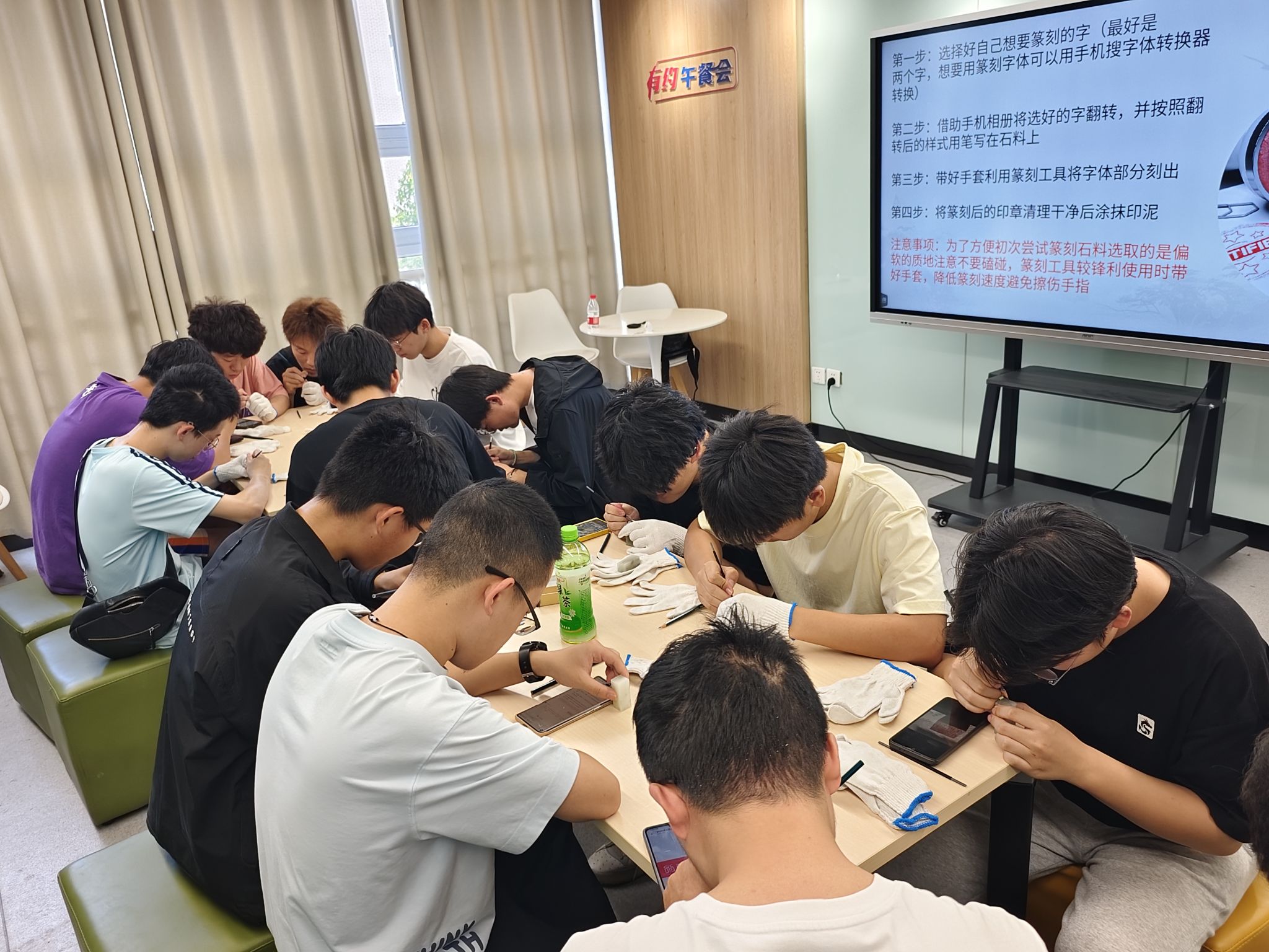 4月26日,由永利yl23411no1大学生发展辅导中心主办的“‘印’证心灵,雕琢时光”印章主题活动在翡翠湖校区二号楼沙龙空间成功举办,15名机械学院低年级学子共赴这场传统文化与心灵减压的奇妙之旅。