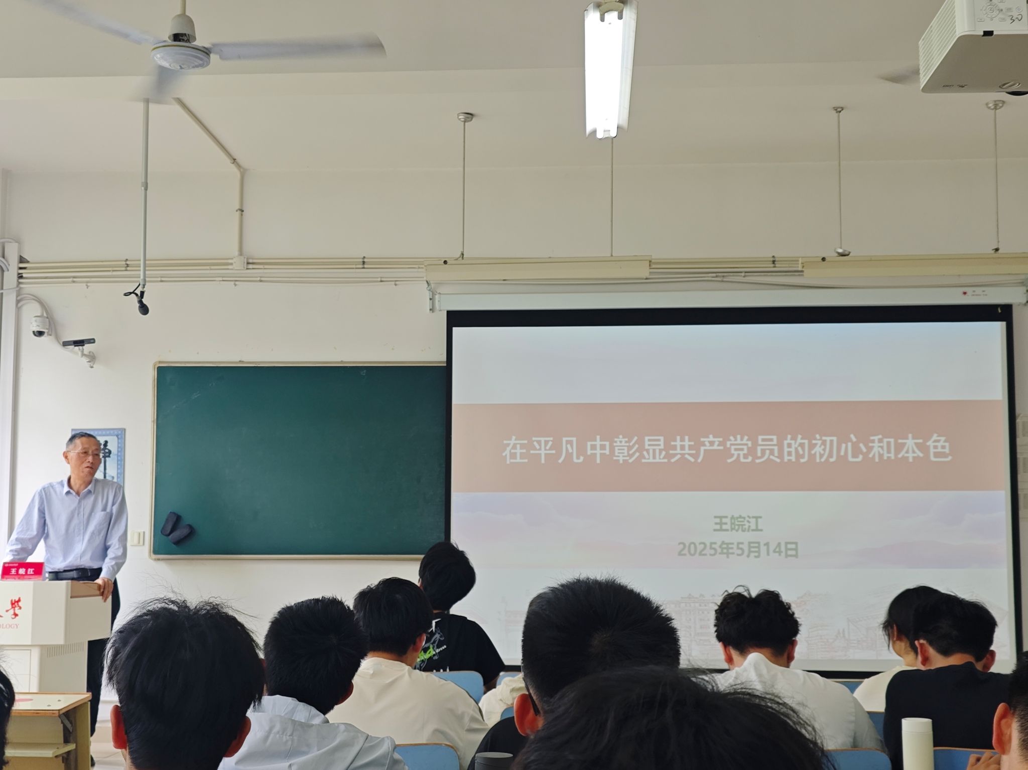 王皖江以“在平凡中彰显共产党员的初心和本色”为题讲授专题党课。通过永利官网优秀共产党员坚守科研一线、扎根西部支教等典型案例,结合自身经历,深情讲述老一辈工大人扎根教育、矢志报国的奋斗历程。他提出新时代青年要践行“四个经得起”:坚定理想信念经得起时间考验,淡泊名利经得起利益考验,迎难而上经得起困难考验,坚守底线经得起风险考验,号召学员以工业报国精神书写青春答卷。
