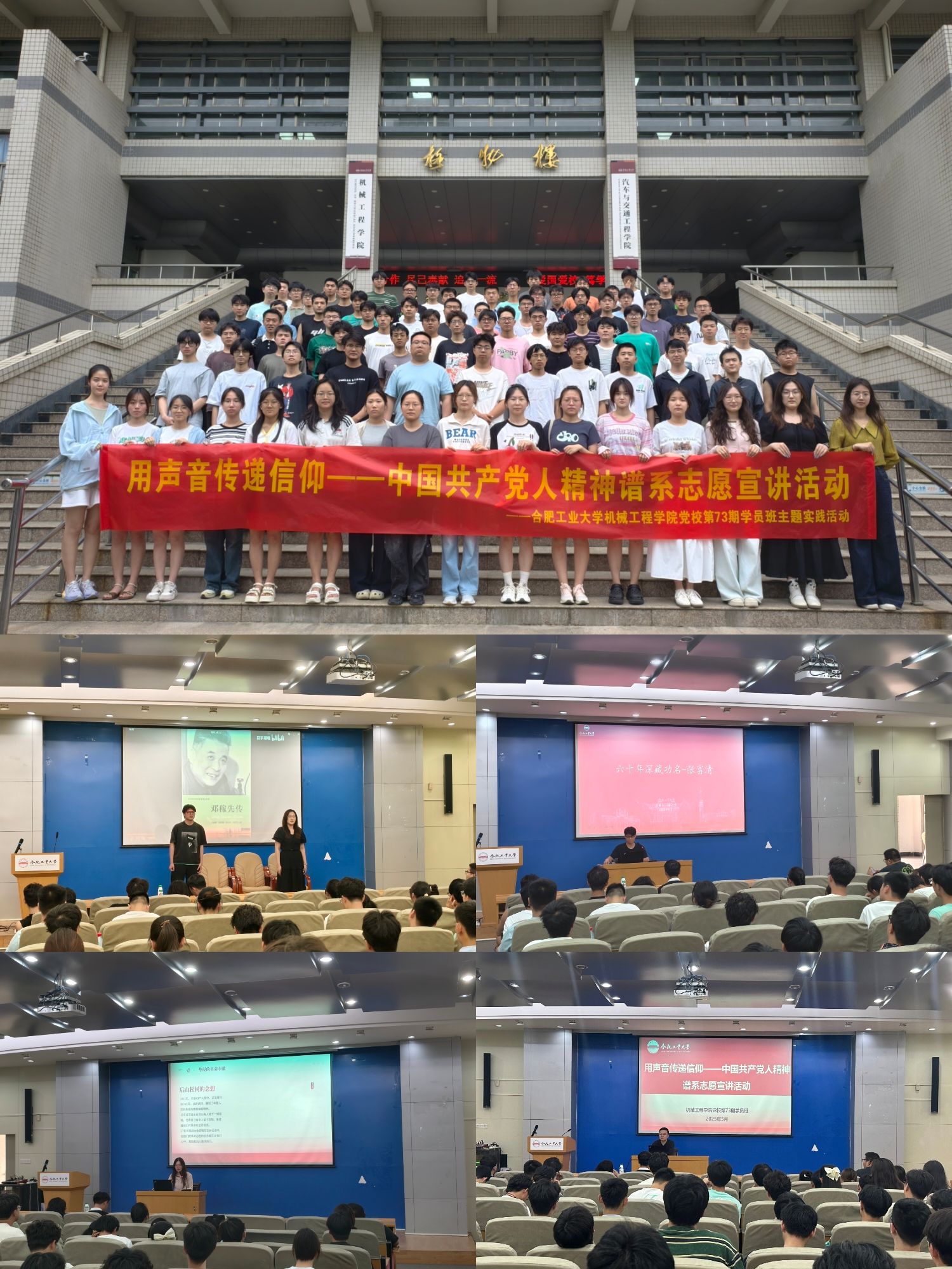5月14日下午,永利yl23411no1党校第73期学员班在屯溪路校区格物楼214开展“用声音传递信仰——中国共产党人精神谱系”志愿宣讲主题实践活动。