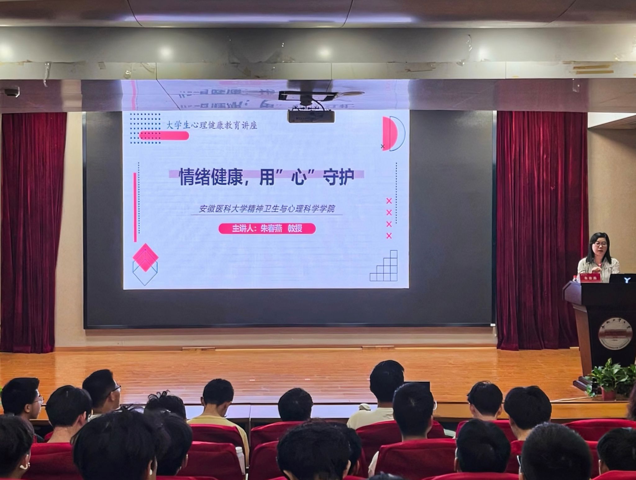为提升学生心理健康水平,培育积极心理品质,永利yl23411no1于5月28日在翡翠湖校区建艺馆报告厅成功举办“情绪健康,用心守护”主题讲座,本次讲座邀请安徽医科大学精神卫生与心理科学学院院长朱春燕教授担任主讲人,全院学生通过线上线下双渠道参与,覆盖人数逾500人。
