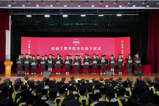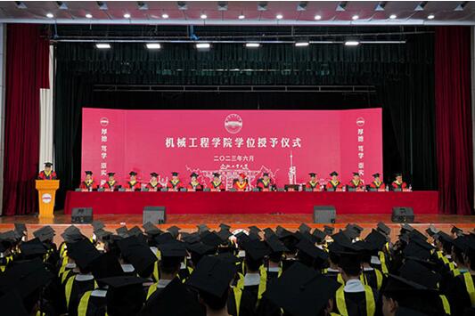 仪式在庄严的国歌声中拉开帷幕。学院副院长祖磊教授宣读了《关于永利yl23411no12023届毕业生学位授予情况的通知》,授予高天燕等7人学术博士学位、李东流1人非全日制工程博士学位、杨思平等133人全日制学术硕士学位、丁仁杰等150人全日制专业硕士学位、陈涛等17人全日制工程管理硕士学位、周定威等4人非全日制专业硕士学位、黄旭等522人工学学士学位。校、院领导老师为全体学位获得者扶正流苏、颁发学位证书并合影留念。