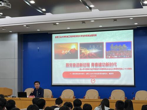 仪式结束后,学校党校原常务副校长姚跃传以《跟党奋进新征程,青春建功新时代》为题,为分党校学员上第一堂党课。