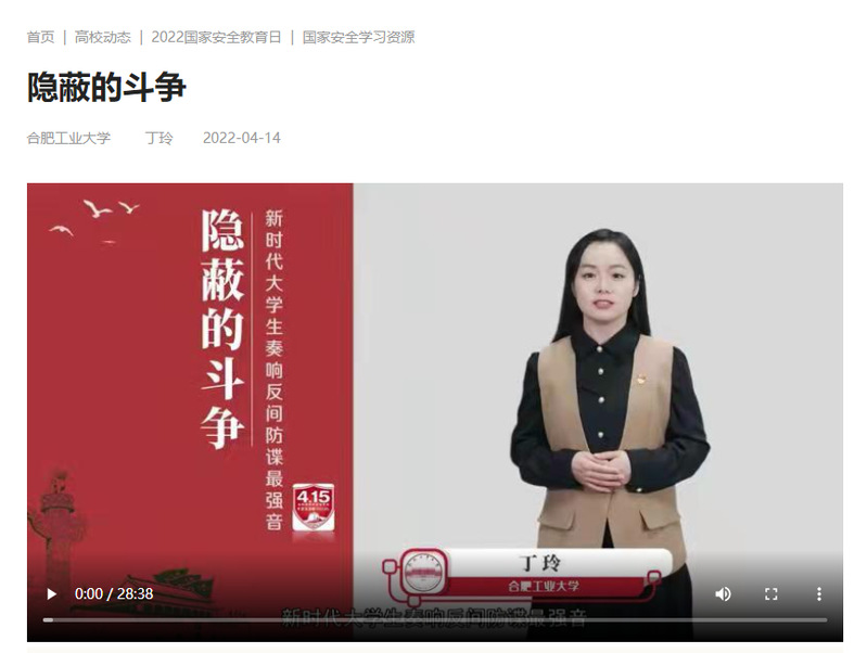 为全面贯彻落实总体国家安全观,4月1日至15日,永利yl23411no1开展为期两周的大学生国家安全教育教学活动,学院2019级辅导员丁玲担任主讲人,为学院2019级本科生讲授国家安全课。讲授内容被录制为精品示范课程1项,在2022年国家安全教育教学视频征集与展示活动中被评为全国优秀示范教学视频,被教育部思政网学习资料库收录。