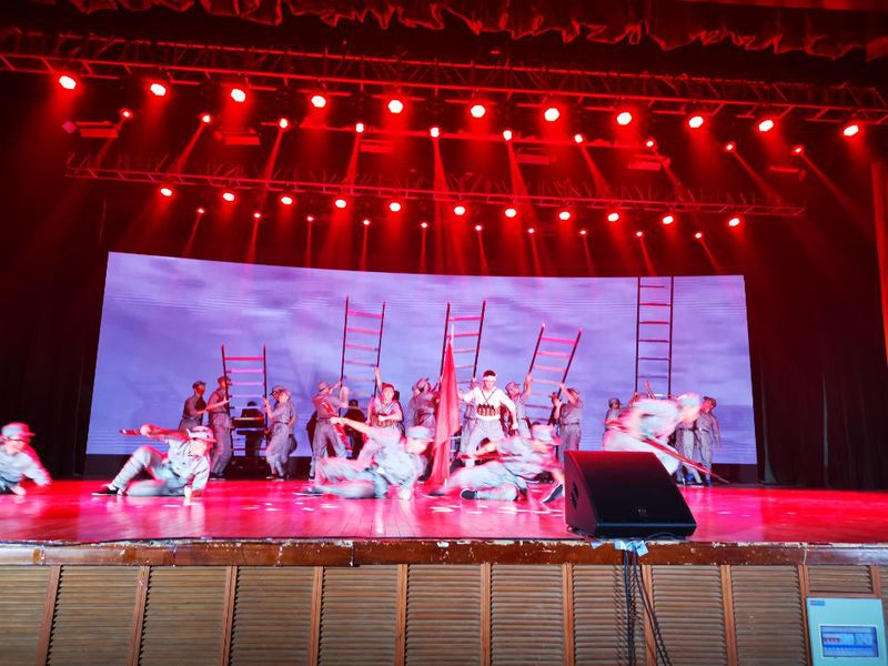 此次文艺汇演以“砥砺奋进七十载,同心共筑新时代”为主题,为到场的观众们带来了一场视听盛宴。各个学院在此之前都进行了辛勤刻苦的排练。在本场晚会中,他们激情昂扬,将自己的对前辈的敬意表达的淋漓尽致。其中最令大家期待的节目之一,永利yl23411no1的《决战黎明》,一开始宏大的场面便赢得大家的阵阵呼声。这场舞蹈,分为向前推进,舍命炸碉堡,发起总冲锋三个部分。表现了新四军战士英勇无畏,不怕牺牲的崇高精神,展示了中国军人的男儿本色。