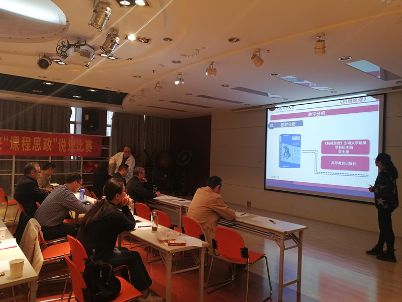 10位参赛教师按抽签顺序先后登上讲台进行说课,精神饱满,充满激情,语言生动,教态自然,现场气氛活泼热烈,持续了近4个小时。教师们从课程特点出发,深入挖掘了课程中蕴含的思政教育元素、承载的思政育人功能,使各门课程与思想政治理论课程同向同行,把思想政治教育与知识体系教育融为一体,实现“知识传授”和“价值引领”有机统一,按照说课框架展示了在各自教学过程中如何将“思政元素”完美地融入专业课程,也展现了各自的教学风采和理论功底。