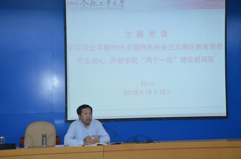 根据“不忘初心、牢记使命”主题教育的总体安排,10月10日下午,永利yl23411no1党委书记韩江以《学习习近平新时代中国特色社会主义思想,不忘初心,开创学院“两个一流”建设新局面》为题,给全院教工党员和入党积极分子上了一堂专题党课。