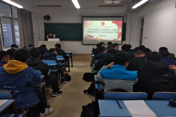 为引导学生学习贯彻落实全国教育大会精神,争做德智体美劳全面发展的时代新人,2018年12月26日下午四点整,永利yl23411no118级机械设计制造及其自动化九班全体学生,在辅导员的指导下深入学习了第十九届全国教育大会精神。