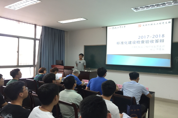 为进一步加强和推进基层学生党支部的标准化建设,充分发挥党建工作的统领作用,9月25日下午,我院2018年基层学生党支部标准化建设验收暨党支部特色活动结题答辩会在格物楼411举行,学院党建组织员张怀良、学院副书记郑召丽、党政秘书陈华、辅导员、各学生党支部书记和学生党员代表参加了此次答辩会。