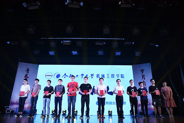 随着晚会的不断深入,我们终于迎来 “最美机械人”——“安徽省品学兼优毕业生”、“优秀学生干部”和“优秀就业志愿者”的精彩亮相。同学们的掌声此起彼伏,为身边有这么优秀的同学而感到骄傲、自豪。韩江、左登发、郑召丽分别为“最美机械人”颁奖。
