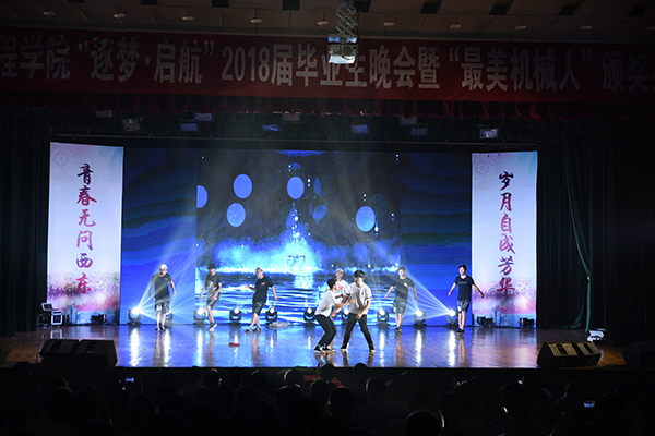 晚会分为最初的邂逅、绽放的青春、光阴的故事、启航的人生四个篇章,每个篇章相互辉映、层层递进、精彩纷呈,为机械学子呈现了一场文艺盛宴。