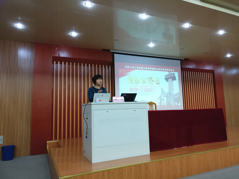 学院党委副书记郑召丽主持会议,并首先带领在场全体人员为南京大屠杀死难者、为在日本帝国主义侵华战争期间被杀戮的同胞默哀。2017年12月13日是侵华日军南京大屠杀80周年祭,郑召丽为学生党员讲述了国家公祭日的深刻含义,并教育大家要铭记历史,勿忘国耻,以史为鉴,振兴中华。