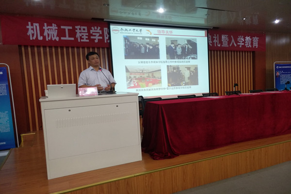 典礼上,2015级机械设计及理论专业研究生邢勇强作为老生代表发言,2017级机械工程专业董王妍作为新生发言。