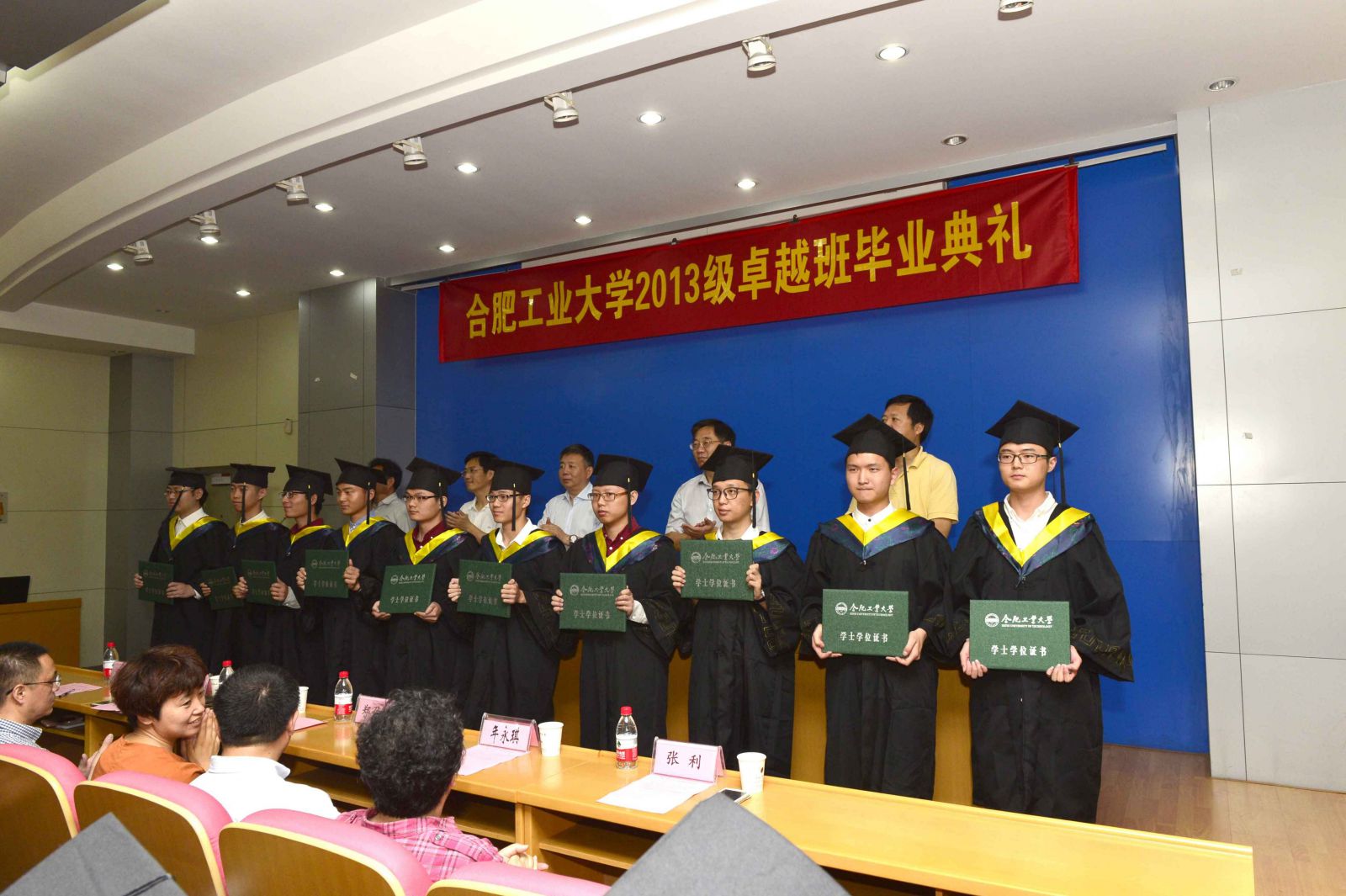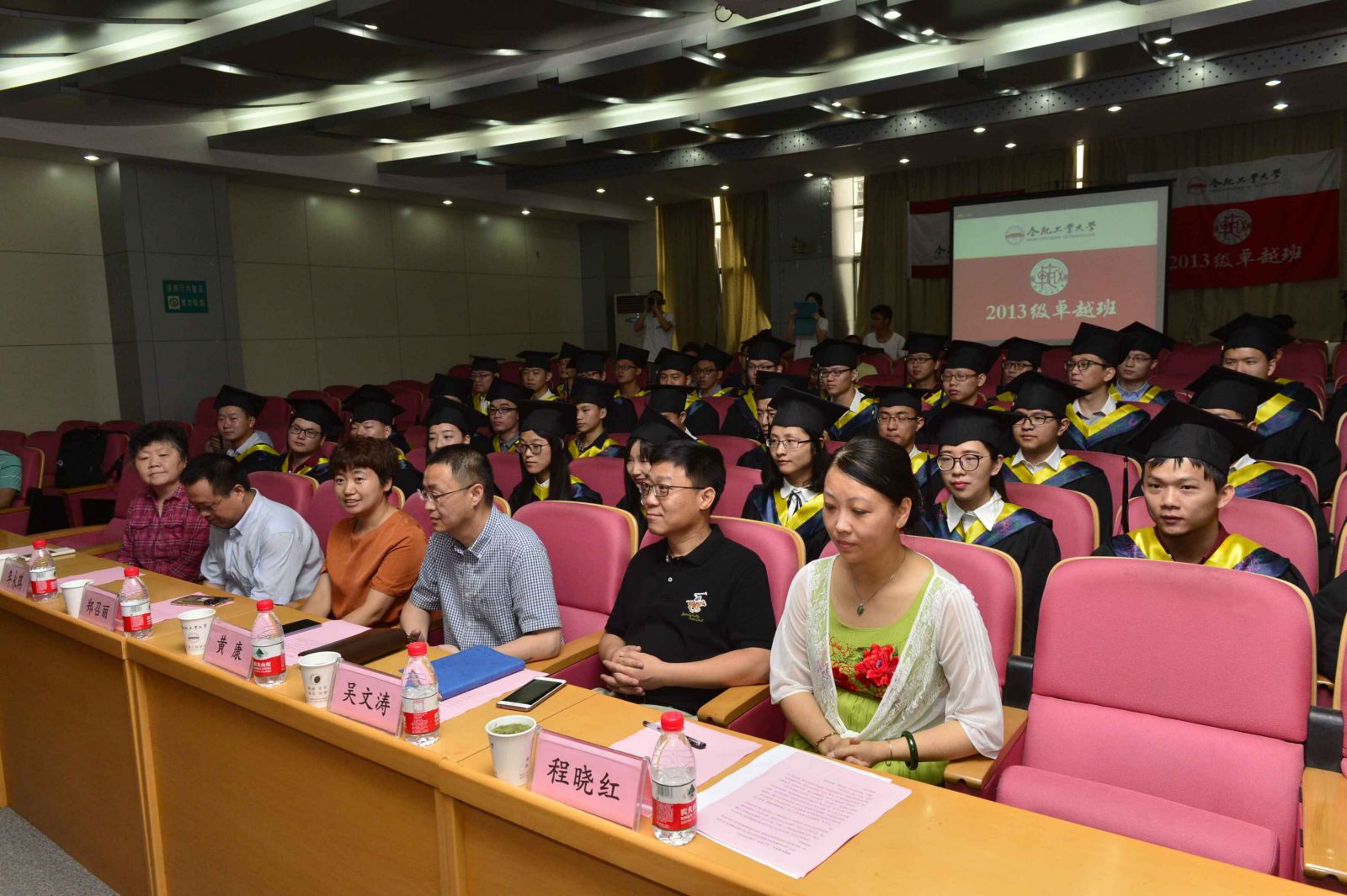 6月19日上午10点,“英才计划”创新班,2013级卓越班在格物楼2楼会议报告厅举行毕业典礼,校长梁樑参加了此次仪式,参加毕业典礼的领导还有教务部部长陈翌庆教授、学工部部长王峰老师、教务部副部长兼创新创业教育中心主任黄景荣老师、永利yl23411no1党委书记韩江教授、永利yl23411no1副院长黄康教授、永利yl23411no1党委副书记兼副院长郑召丽、党政办主任年永琪、创新创业教育中心副主任吴文涛老师、创新创业教育中心主管程晓红老师。
