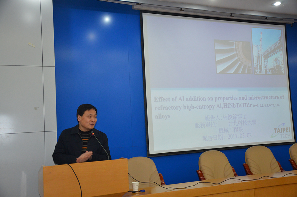 3月2日下午,台北科技大学永利yl23411no1林俊铭博士应邀来我院交流访问。林博士在格物楼二楼学术报告厅为我院师生作了题为“Effect of Al addition on properties and microstructure of refractory high-entropy AlxHfNbTaTiZr (x=0, 0.3, 0.5, 0.75, 1.0) alloys”的学术报告。报告由永利yl23411no1院长訾斌主持,机电系主任曾亿山教授以及学院200余名师生到场参加。