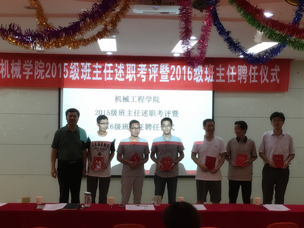 在2015级班主任述职交流会上,11位2015级本科生班主任结合自己的实际工作,对照班主任工作职责一一进行了述职。由学校有关部门领导、院系负责人、辅导员代表、学生院长助理及2015级各班级学生代表等30余人组成的评审团,对班主任述职情况进行了询问和测评。朱华炳、王玉青、朱立红、张魁榜、扈静、李德宝等6位老师,凭借扎实的工作、突出的表现获得评委的一致好评,被授予“优秀班主任”称号。与会领导向他们颁发了证书和奖品。