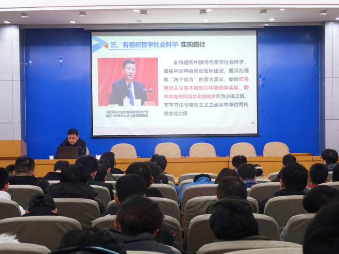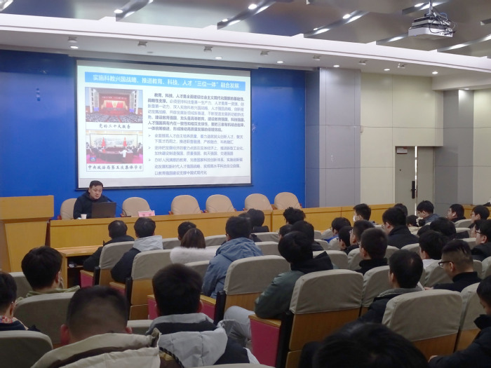 12月26日下午,永利yl23411no1院长訾斌教授以“施科教兴国战略,推进教育、科技、人才‘三位一体’融合发展”为题在格物楼214报告厅为研究生作专题报告。