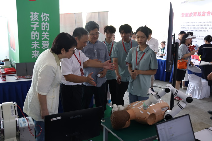 在基金会展区,我院展出了曾亿山教授和张涛老师带领的DMD团队研发的“机器人一体化关节电子力矩估计器研究”和“基于经络穴位的中医药理疗机器人系统”两项创新成果,获得了与会领导和参观群众的高度评价。展会期间,DMD团队代表永利yl23411no1王梦雨同学以及来自安徽中医药大学范宇阳同学,现场向参观者展示团队成果。