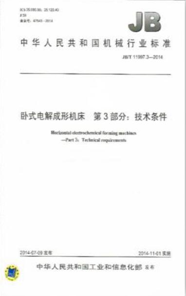 JB/T 11997.3-2014,卧式电解成形机床 第3部分:技术条件.