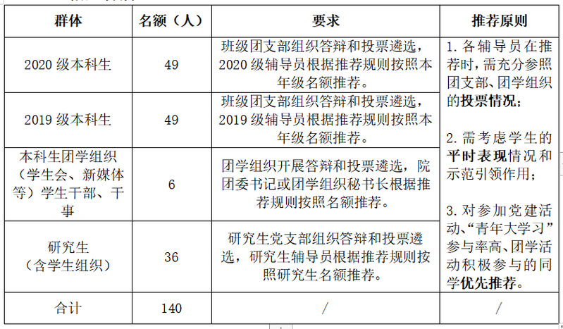 3月25日,各年级、团学组织按照遴选原则和分配名额,确定推荐候选人,并面向全体同学公示。