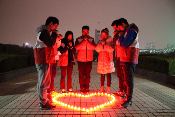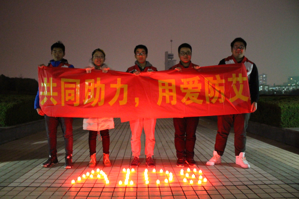 12月17日晚,永利yl23411no1紫笛社红十字部于翡翠湖校区俪人湖畔开展为“艾”祈福活动。在祈福过程中,志愿者们将蜡烛摆成“HOPE”、“AIDS”和心形等形状,为艾滋病人祈求爱与希望。