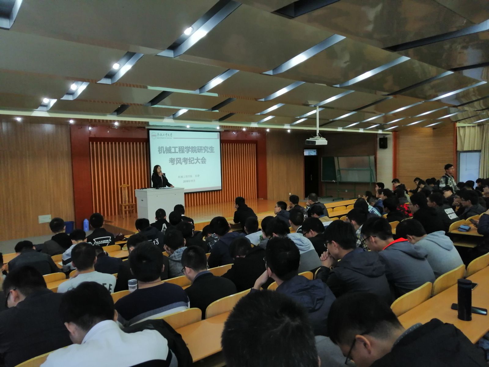 考试周临近,为进一步加强学生考风考纪教育,促使同学们养成良好的考试行为习惯,保证考试的公平公正性,我院于11月9日上午在机械楼214召开研究生考风考纪大会。考风考纪大会由研究生辅导员侯静老师主持、全体2018级研究生新生参加了本次会议。