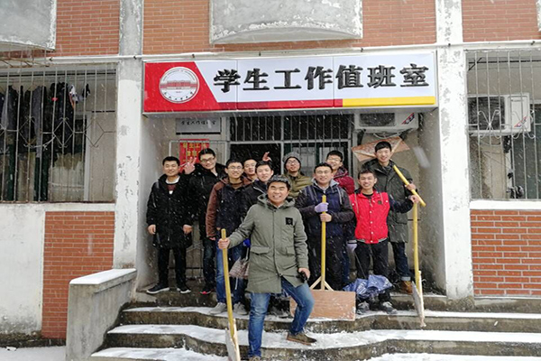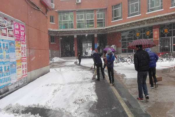 厚厚的白雪包裹了校园的各个角落,给师生们的出行和校园活动带来了诸多不便和安全隐患。为保障师生出行安全,1月25日上午,我院寒假留校毕业生自发到校园主要校道路、宿舍区、食堂等重点区域扫除积雪,切实保障了全校师生方便出行。