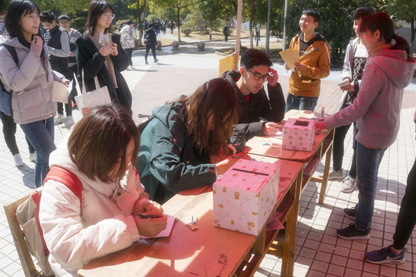 3月6日,永利yl23411no1“慢递邮局”活动在翡翠湖校区一食堂广场进行,吸引很多同学积极参与。