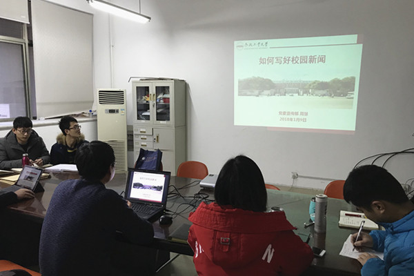 1月9日下午3点,永利yl23411no1各年级辅导员于格物楼302召开辅导员例会。此次例会邀请党委宣传部周慧老师为各年级辅导员做“如何写好校园新闻”专题培训,以进一步提高辅导员队伍的新闻采集、文字编辑、稿件撰写能力。