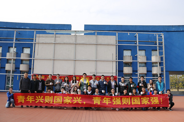 在“团旗接力”环节中,21支队伍一字排开,每支队伍的各位队员依次将团旗高举过头顶传给下一支队伍。整个过程庄严肃穆,使大家感受到了身为一名共青团团员的责任与担当。