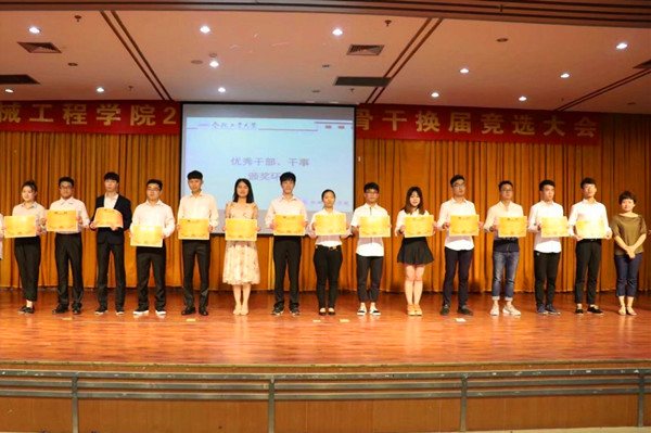 大会中,由各位领导老师为学生会、团总支的优秀干部干事颁奖,感谢他们一年来为学院的辛苦付出!院党委副书记郑召丽老师表示,以学业为本,实践为重,把工作落到实处。学生骨干要引导和凝聚青年,有魄力、有胸怀、有担当,将家国情怀和“制国之重器,造民之栋材”的精神发扬光大。