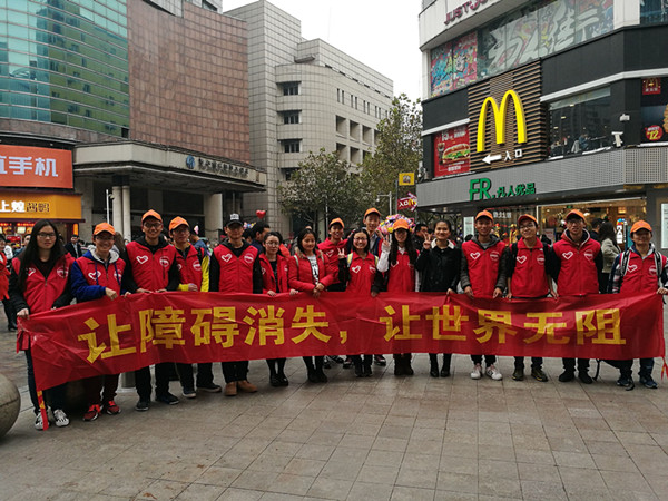 为了向合肥市民宣传倡导无障碍环境,弘扬人道主义思想,倡导助残新风尚,在12月3日世界残疾人日,永利yl23411no1紫笛志愿者服务中心助残部开展了“倡导无障碍,爱心更易行”主题活动。